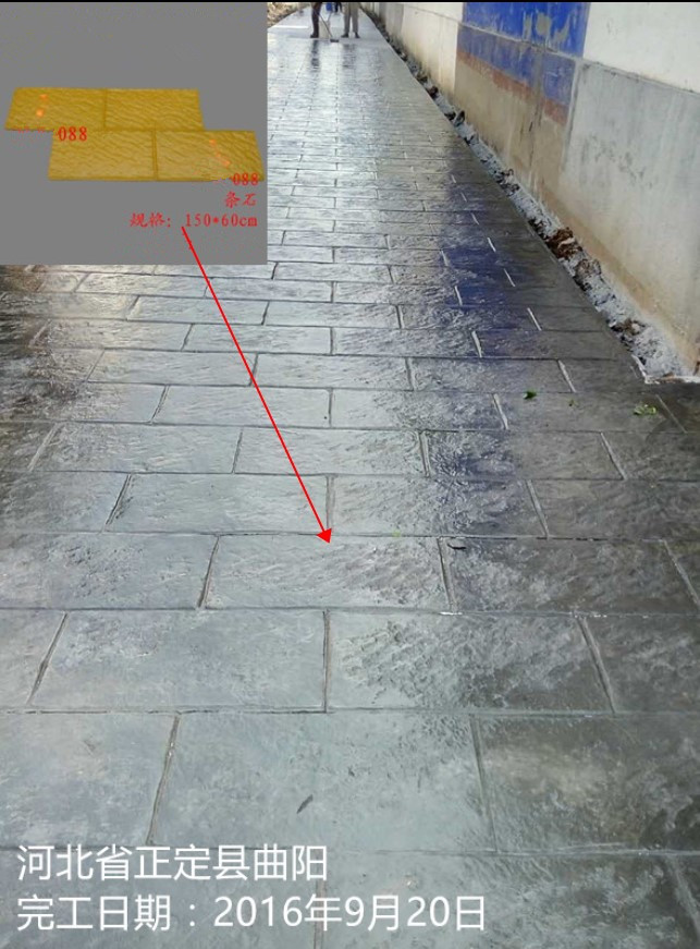 項(xiàng)目名稱:河北省正定縣曲陽(yáng)壓模壓花地坪工程 項(xiàng)目地址:河北省正定縣曲陽(yáng) 竣工時(shí)