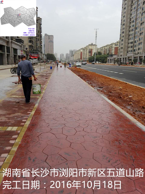 項(xiàng)目名稱:湖南省長(zhǎng)沙市瀏陽(yáng)市新區(qū)五道山路壓模壓花地坪工程 項(xiàng)目地址:湖南省長(zhǎng)沙市